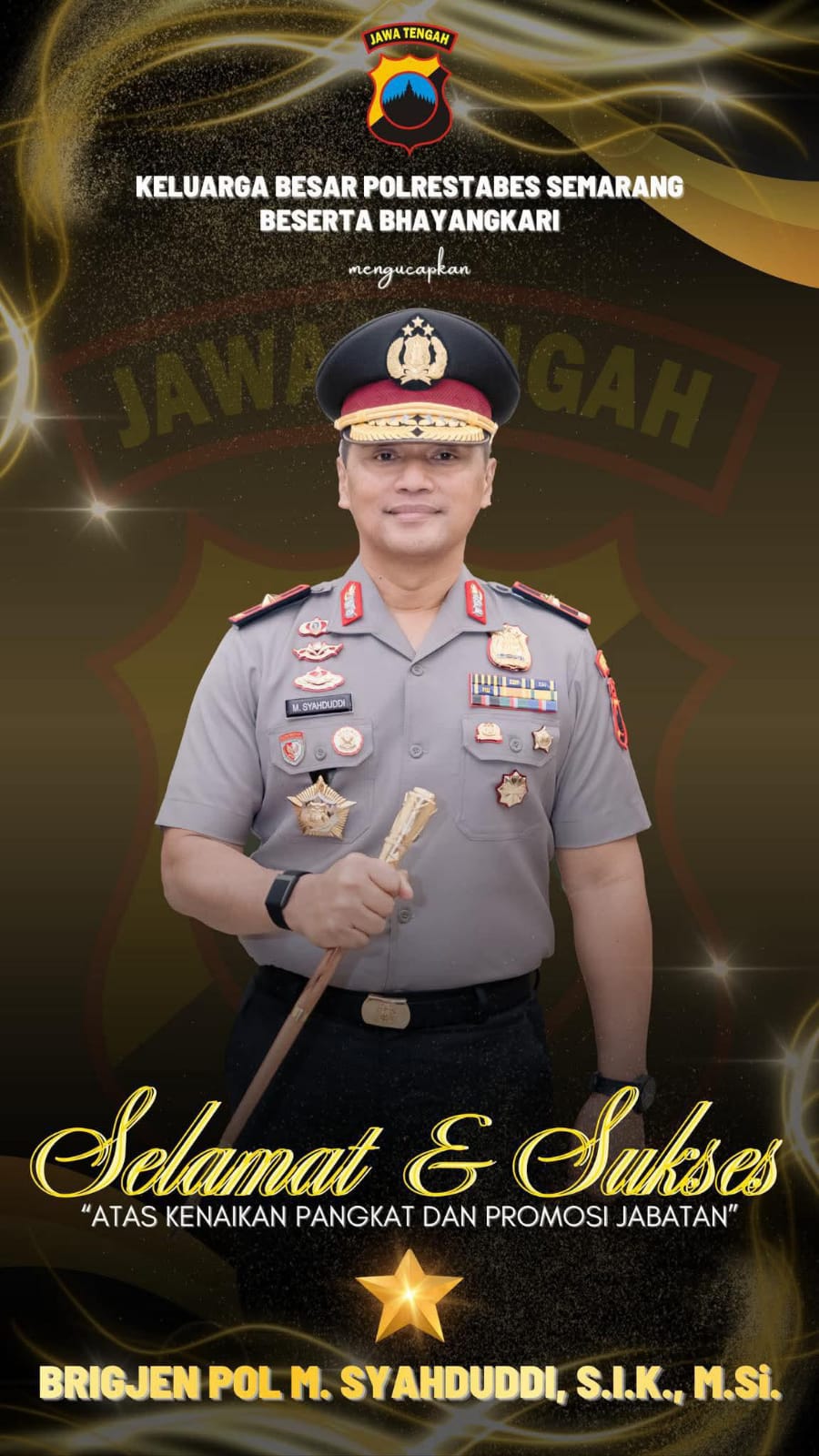 SEMARANG || indonesianewstoday.com || 20 – Maret – 2026,– Prestasi gemilang kembali ditorehkan di tubuh Kepolisian Negara Republik Indonesia. Brigjen Pol M. Syahduddi resmi menerima kenaikan pangkat dalam sebuah upacara khidmat yang digelar di Mabes Polri.