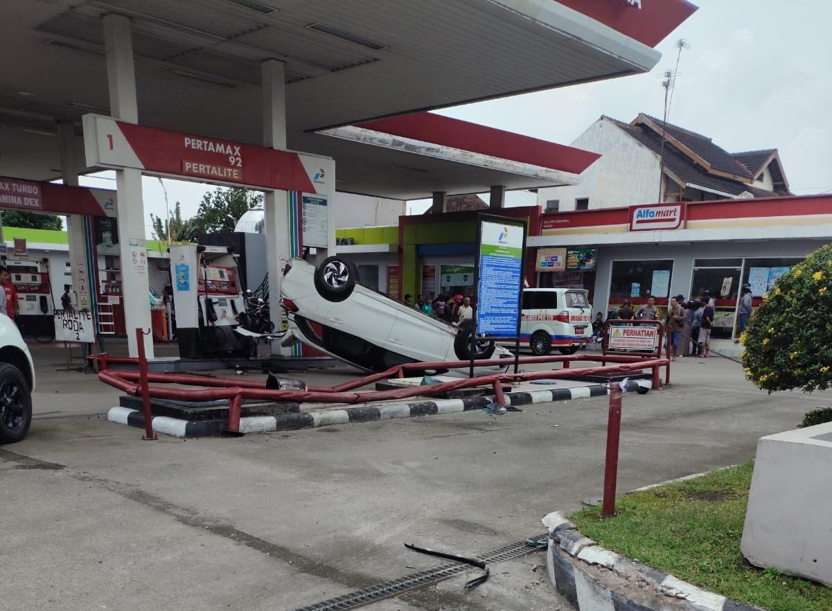 “Mobil menabrak pembatas taman SPBU hingga terguling. Dalam posisi terguling, kendaraan membentur sepeda motor yang sedang mengisi BBM serta operator SPBU yang berada di dekat dispenser,” jelasnya.