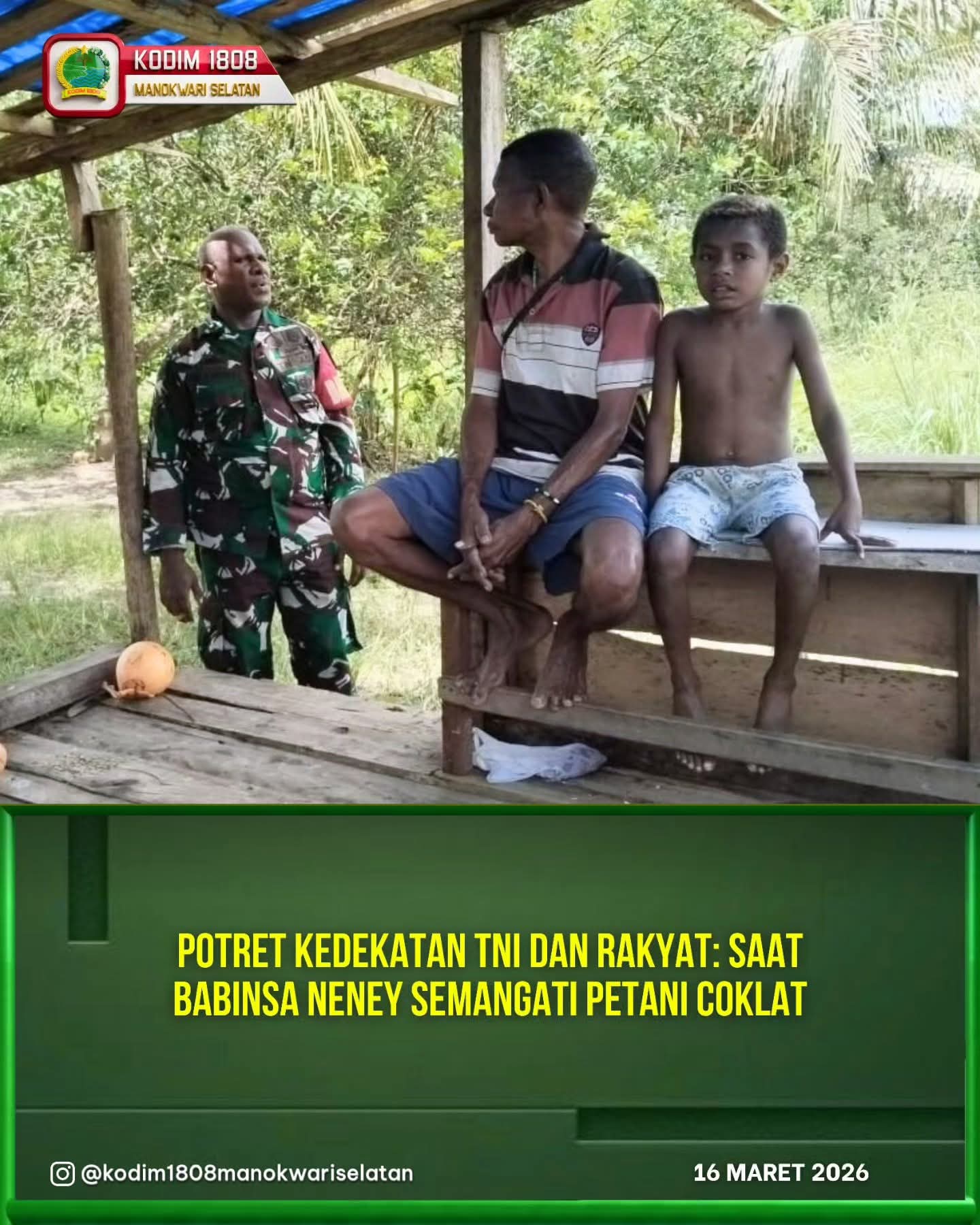 NENEY || indonesianewstoday.com – Upaya untuk terus hadir di tengah masyarakat dan membantu kesulitan warga terus dilakukan oleh jajaran Kodim 1808/Manokwari Selatan. Salah satunya melalui kegiatan Komunikasi Sosial (Komsos) yang dilakukan Babinsa Koramil 1808-06/Neney, Serda Nikson, dengan menyambangi warga di Kampung Sesum, Distrik Neney, Senin (16/3/2026).