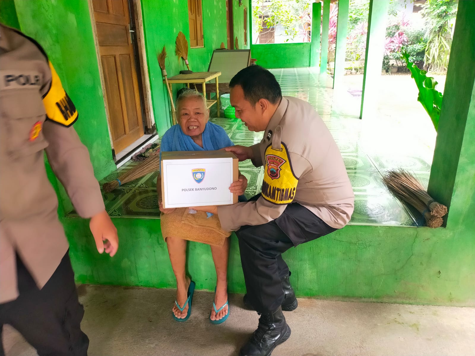 Selain menjalin silaturahmi, petugas juga menyalurkan bantuan berupa paket sembako kepada warga kurang mampu. Bantuan tersebut berisi beras, minyak goreng, telur, teh, dan mi instan.